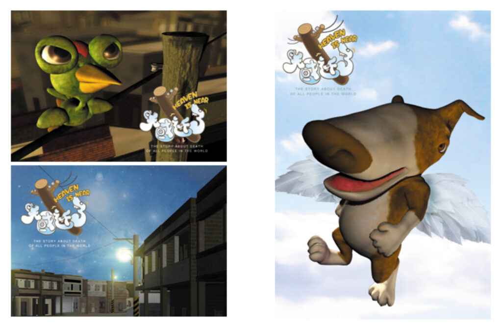 卒業課題「新感覚映画の視聴体験」。同時に上、真ん中、下の3つのモニターからそれぞれ関係のない登場人物による物語が流れ、最後に一つに纏まり、視聴者を期待させるプロジェクト