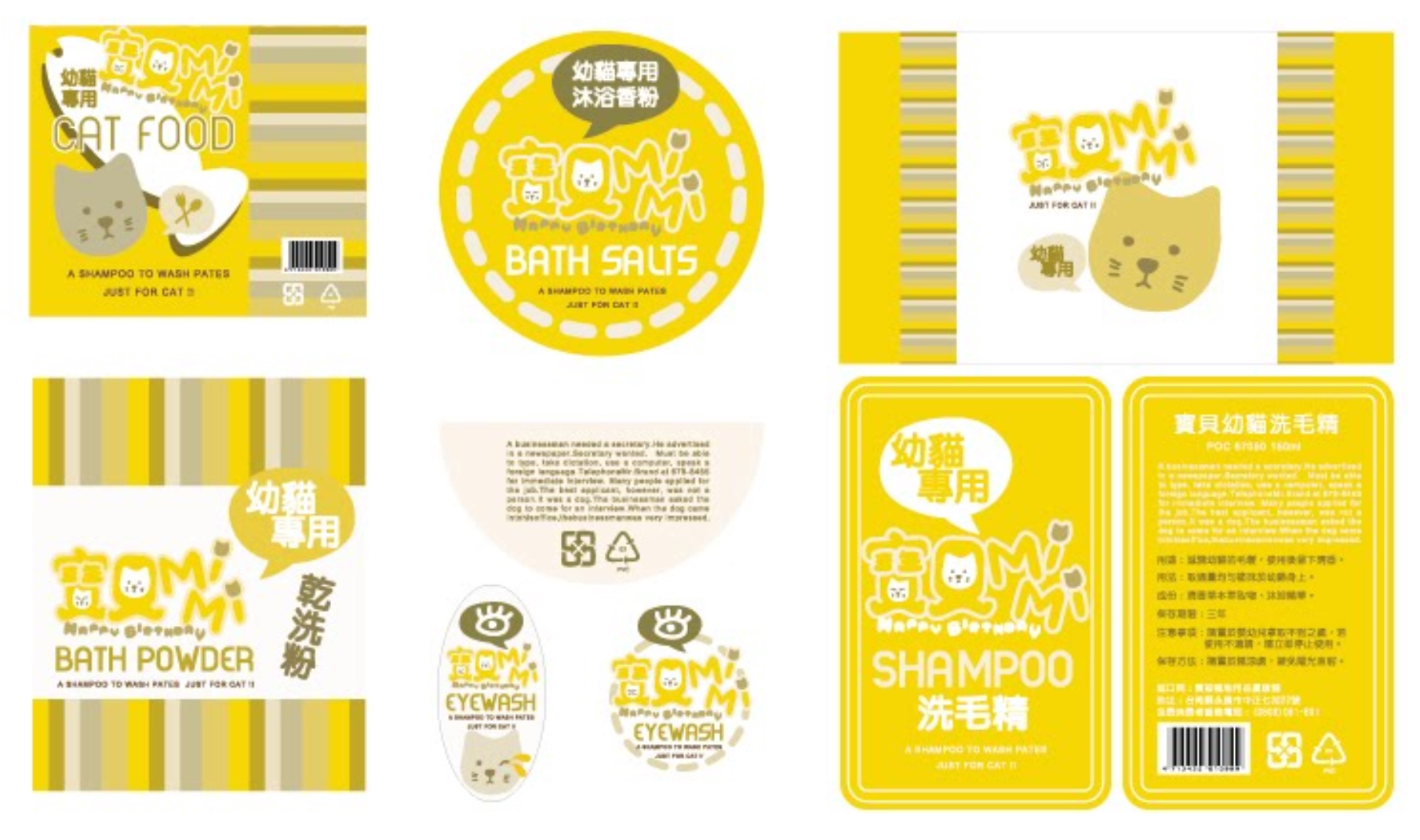 cat food 、ワンチャン用シャンプーなど、いろんなパッケージに合わせてLOGOをアレンジ。